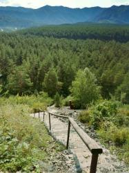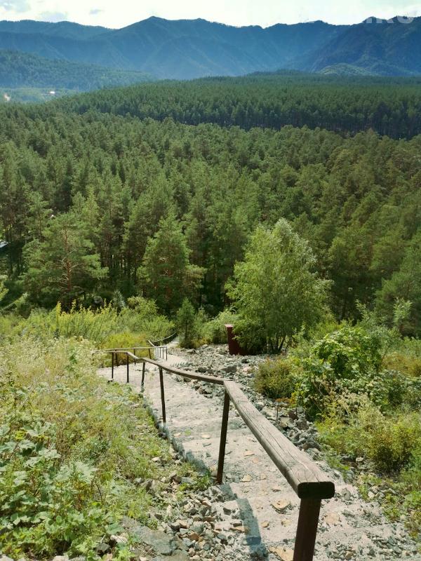 Усадьбы «Бычковых». К пирамиде ведет лестница из 440 ступенек. На вершине подъема оборудована смотровая площадка, где можно полюбоваться на окрестности Чемала с высоты птичьего полета — около 400 метров.