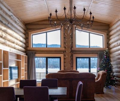 - Коттедж "Шале Охотничий" (6 осн. + доп.места) коттедж из рубленного кедрового бревна, с панорамными окнами, три отдельных номера. В доме три отдельных входа. В первом номере: гостиная, кухня, санузел, спальня. Во втором номере: сан. узел, гостиная с кухней, обеденная зона, на втором этаже спальня. в третьем номере: гостиная с кухней, в гостиной есть диван, сан.узел, спальня.