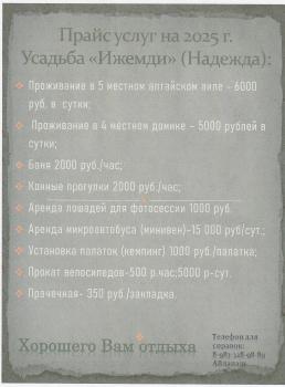 Усадьба «Ижемди» («Надежда») расположена возле села Инегень в Республике Алтай в Онгудайском районе на берегу реки Катунь.