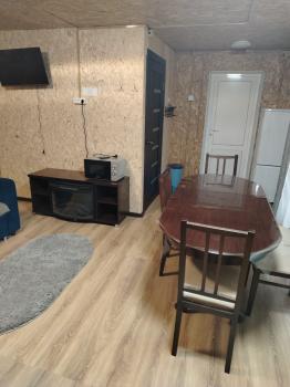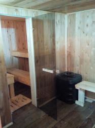 сан узел, душ, раскладной диван, двухъярусная кровать, односпальная кровать, тёплый пол, обогреватель, чайник, эл камин, холодильник, микроволновая печь.