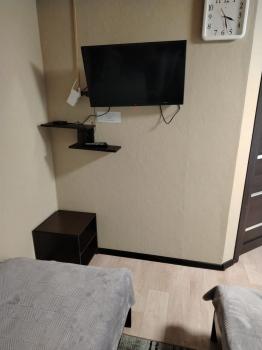 душ, сан. узел, две раздельные кровати, теплый пол, обогреватель ТВ, холодильник.