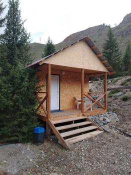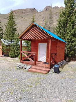 Девять домиков расположены в 300 м от дороги в тихом месте среди гор, по пути к Красным воротам и Улаганскому перевалу. Территория огорожена.