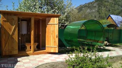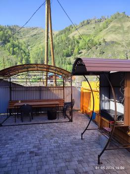 Наше преимущество - хорошее расположение - в центре села Манжерок, через дорогу Мария-Ра, рядом кафе.