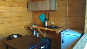 - на террасе номера - кухонная зона: электро-плита, чайник, посуда, холодильник, стол, стулья.