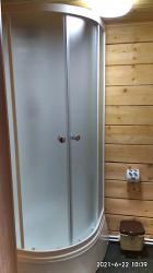 Горячий душ рядом, две кабины на четыре номера, очереди не бывает.