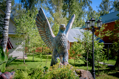 На территории две оборудованные всем необходимым кухни, где гости могут самостоятельно готовить пищу. Также есть возможность питаться в кафе, которых большое количество рядом с усадьбой.