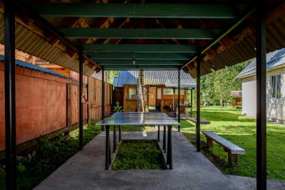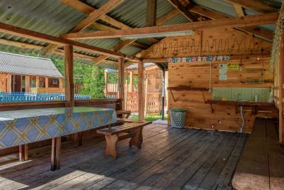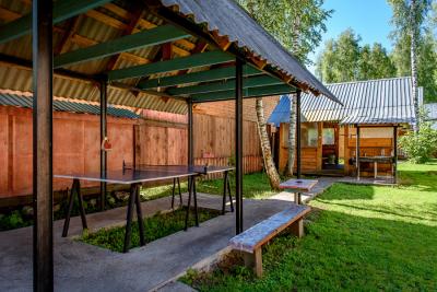 На территории имеются баня, детская площадка, баскетбольная площадка, настольный теннис, беседка, костровище, 4 мангала, стоянка для автомобилей, горячий душ.
