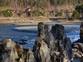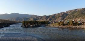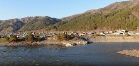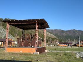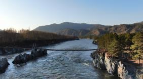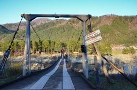На выезде из села в сторону Чемала есть еще подвесной пешеходный мост, ведущий к селу Аюла, расположенному на левом берегу Катуни.