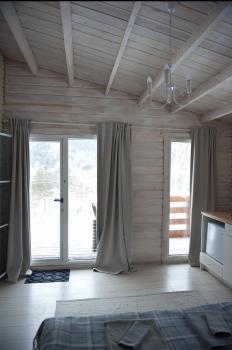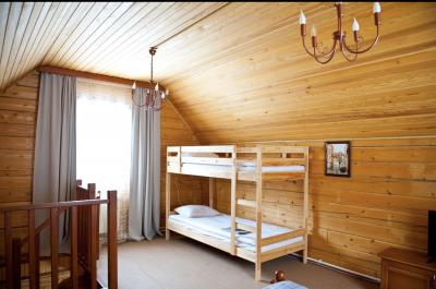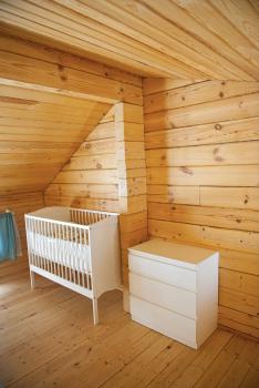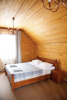 2 этаж: 2-спальная кровать (возможно размещение 2 односпальных кровати), бра, детская кроватка, комод.