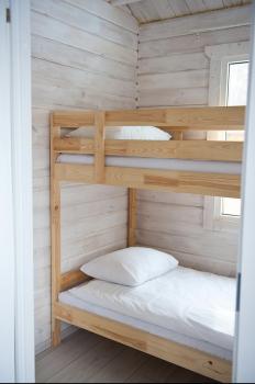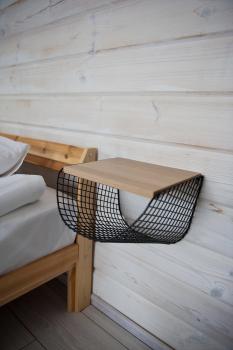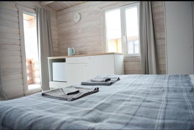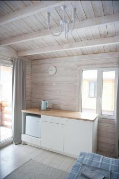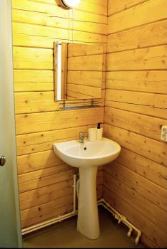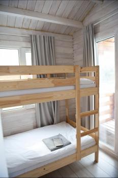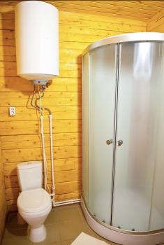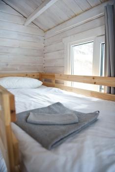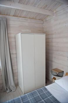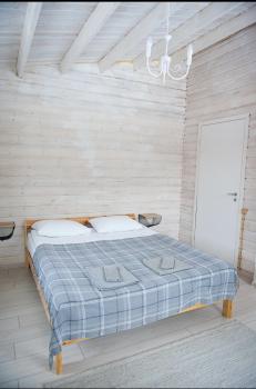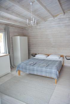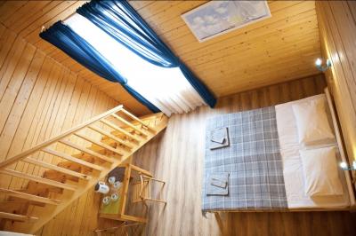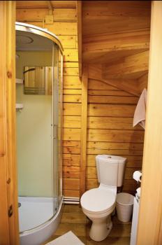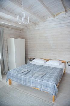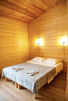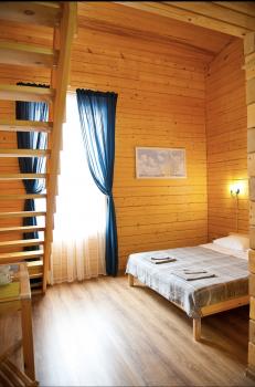 1 этаж: 2-спальная кровать (возможно размещение 2 односпальных кровати) столик, санузел (WC, душевая кабина, раковина, зеркало, туалетные принадлежности).