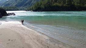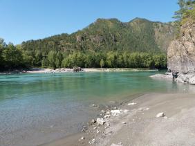 Пляж и береговая линия реки Катунь.