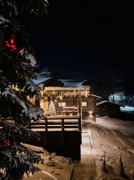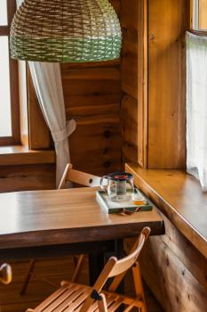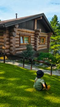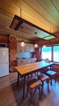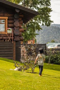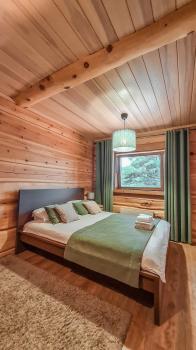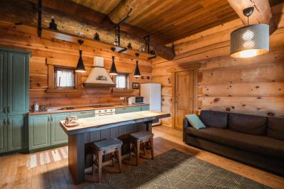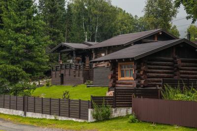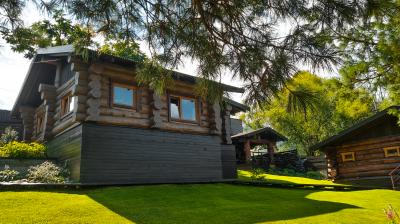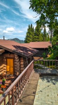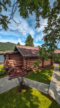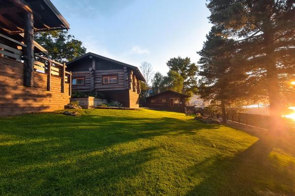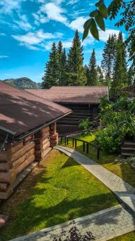 одноэтажные дома-шале, собранные из мощных кедровых брёвен.