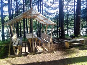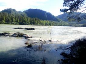 Беседки. Расположены прямо на берегу Катуни, откуда приятно смотреть на текущую воду