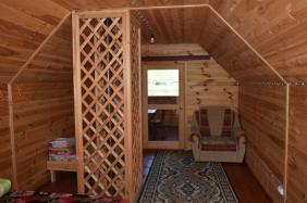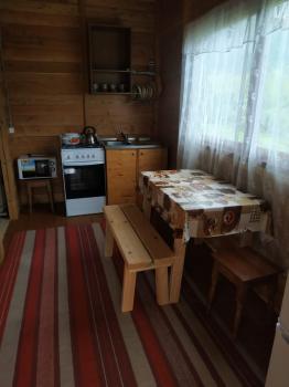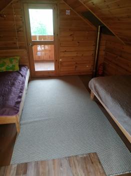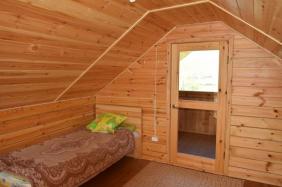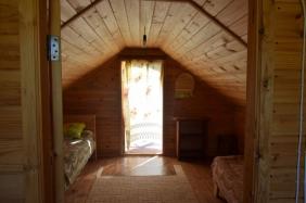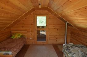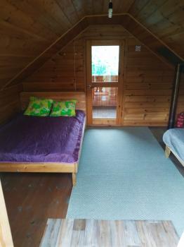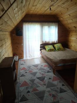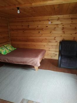 Второй этаж большого дома 4 места. В 4-хместном номере находятся 1 двуспальная кровать, 1 односпальная и кресло-кровать. Без дополнительной платы: кухня, лоджия, душ с горячей водой, дрова, стоянка для автомобилей. Цена