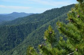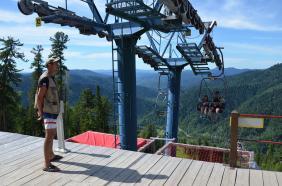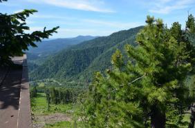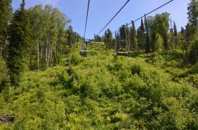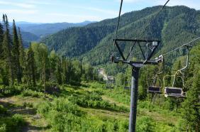 Во время подъема любуешься на проплывающие мимо березы и кедры, слушаешь тишину тайги. Во время спуска перед глазами волны гор, покрытые густо тайгой.