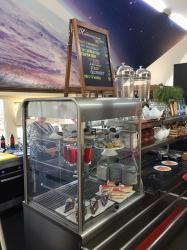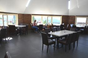 На средней станции подъемника находится кафе "МКС" и смотровая площадка. В кафе вам могут предложить кофе, какао, молочные коктейли, мороженое, бисквиты, пиццу и др.