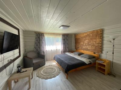 - Спальная комната (двуспальная кровать, кресло- кровать, TV,обогреватель, полотенца);