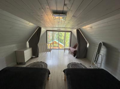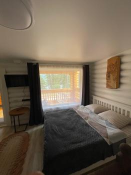 2 отдельных благоустроенных номера. Сдаем в аренду полностью коттедж и отдельно номера. С балконов-террас коттеджа открывается прекрасный вид на лес, за которым виднеется Телецкое озеро.