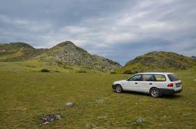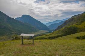 По пути к поляне вам надо держаться дороги в гору. Налево будет ответвление к Катуни, где стоит паром. Перед поляной справа будет стоять белый столбик 10х10, за ним огибаете слева гору и оказываетесь на поляне с деревянной "кафедрой" - наклонным столом, как будто для чтения докладов )).