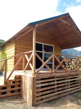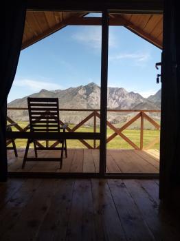 Домик 2, до 4х-мест (дом из лиственного полубруса с панорамным окном): печка, инфракрасный обогреватель, одна двуспальная кровать и 2 односпальные кровати, стол, стулья, этажерка, чайник электрический, мини-холодильник.