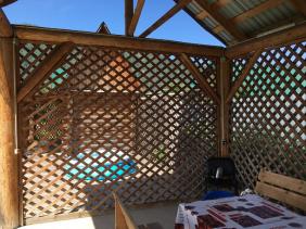 Комфортная зона отдыха: баня, удобная большая беседка, мангал, печь, посуда, раковина.
