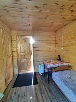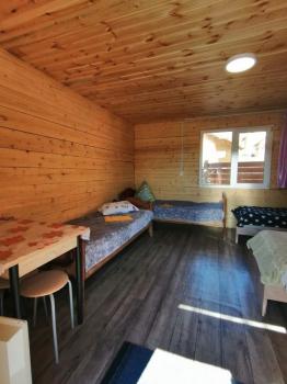 - 1 двуспальная кровать, 2 односпальные кровати - домик номер 4 (нижний этаж двухэтажного домика).