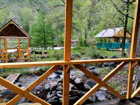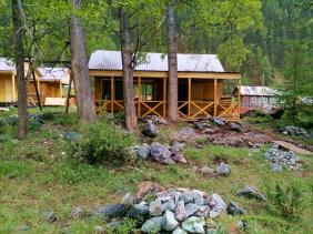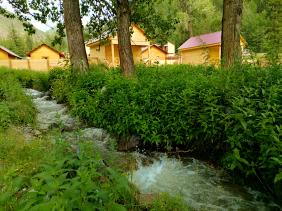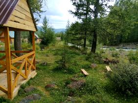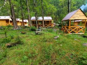 Место расположение - на берегу реки в красивом живописном месте. На территории базы протекает ручей и горная река.