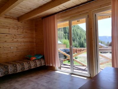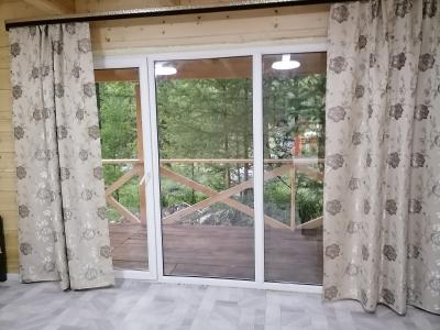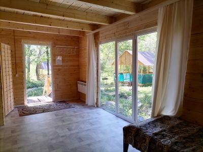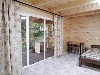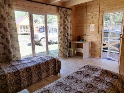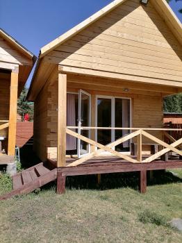 Площадь больше, чем в обычных 4-х местных домиках, панорамные окна смотрят на реку.