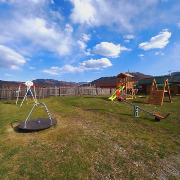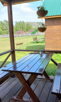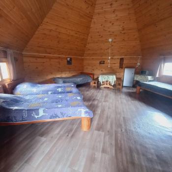 - Аил четырехместный с удобствами -- 5000 р. дом. 4 односпальные кровати, электрочайник, холодильник, большая печь, посуда, удобства (туалет, раковина).