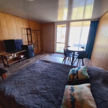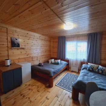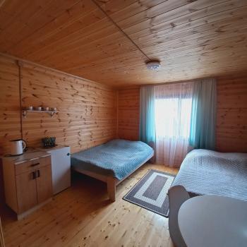 - Три 4-хместных благоустроенных номера 6000 р. номер. Душ, туалет, раковина. Холодильник, телевизор, эл.чайник, посуда. В номерах одна двуспальная и две односпальные кровати.
