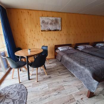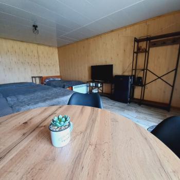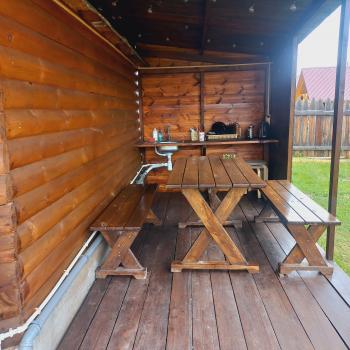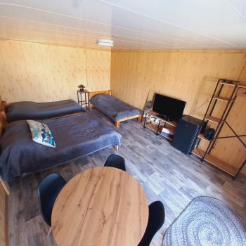 - Два двухместных благоустроенных номера (дуплекс) -- 4000 р. за номер. Двуспальная кровать, холодильник, электрочайник, посуда, на террасе уютные качели.