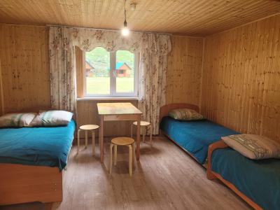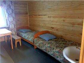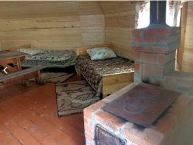 5 односпальных кроватей, раковина с водой, эл. розетки, печка, деревянные полы.