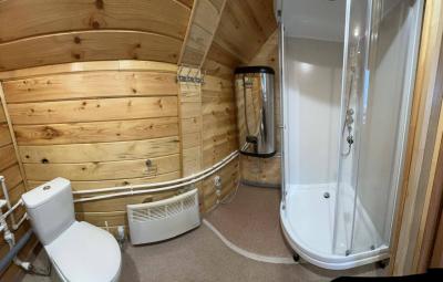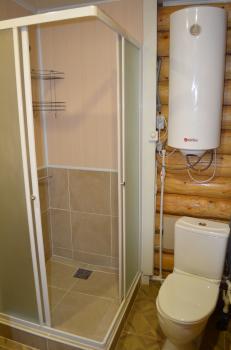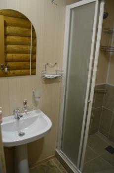 Санузел в номере: душ, туалет, гор/хол вода, раковина, зеркало.