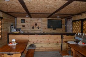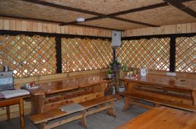 заказать еду, в любую погоду можно пообщаться с друзьями или посмотреть футбольный матч по телевизору. С одной стороны усадьбы сосновый лесок, с другой живописная гора, что создает ощущение уединенности и уюта. Большая зеленая лужайка на базе отдыха подходит для игр с детьми, проведения тренингов, принятия солнечных ванн..