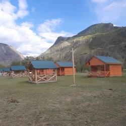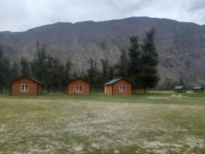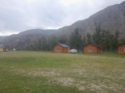 Размещение в деревянных уютных домиках с удобствами, из которых можно любоваться Чулышманской долиной и рекой: