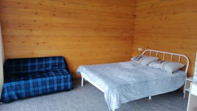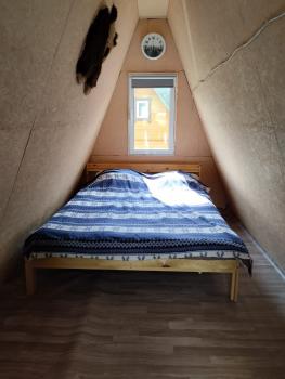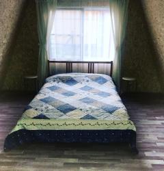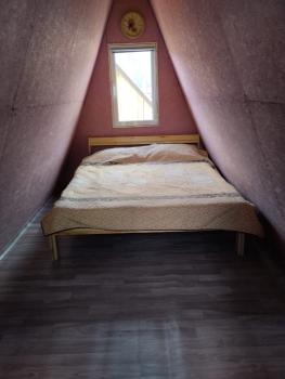 Второй этаж домика: 2-спальная кровать, тумбочка.