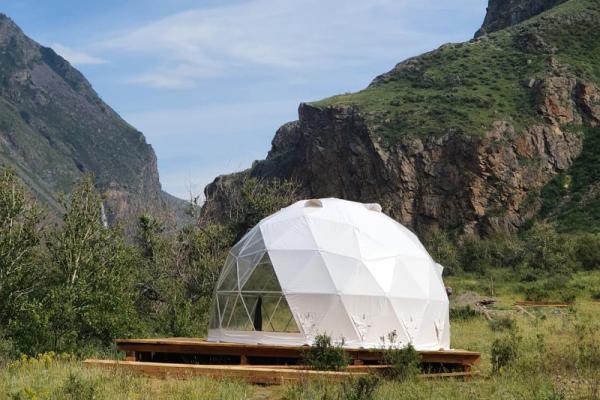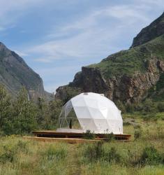Благоустроенные домики и 2 купола с панорамным видом на реку Чулышман.
