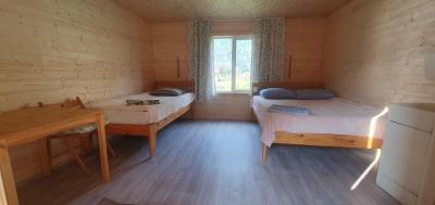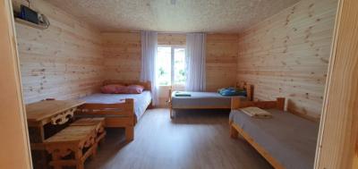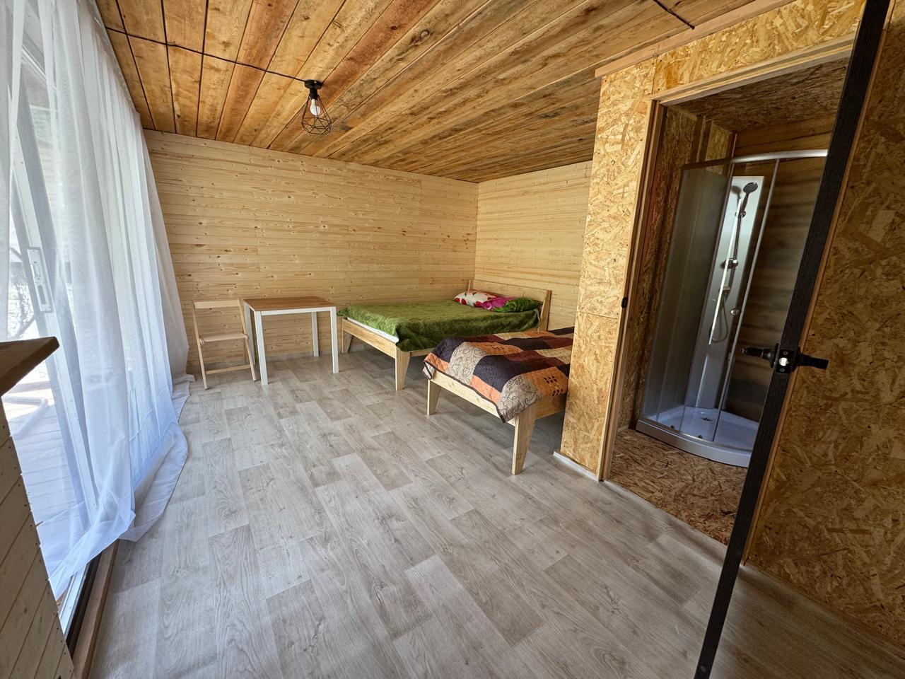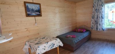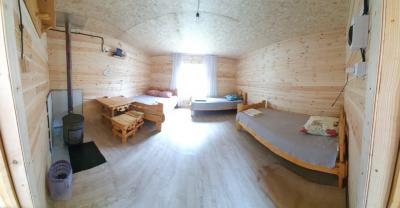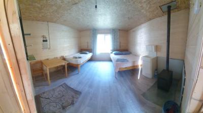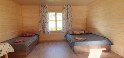 - Два 3-х местных уютных домика с душем, туалетом, печкой 3500 р. дом. Душ, туалет в домике. Двуспальная кровать и односпальная кровать, печка, столик, стулья.