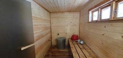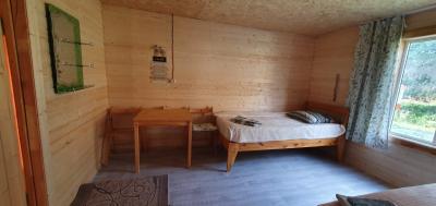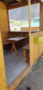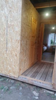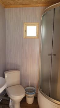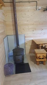 - 4-х местный домик с душем, туалетом, печкой 3500 р. Душ, туалет в домике. Двуспальная кровать, 2 односпальные кровати, печка, столик, стулья.