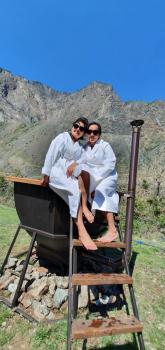 Банный чан – это новый формат отдыха на Чулышмане на открытом воздухе с семьей или друзьями. Пребывание в чане можно сравнить с купанием в полезном горячем источнике, а летом его можно использовать в качестве бодрящей холодной купели.
