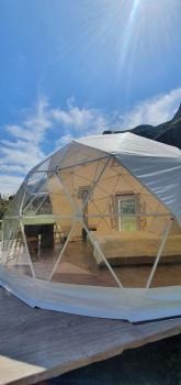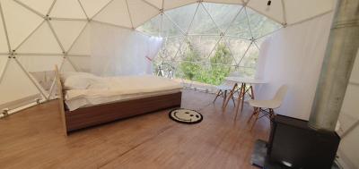 - 2-х местный купольный дом с видом на реку 3500 р. Двуспальная кровать, печка, столик, стулья.