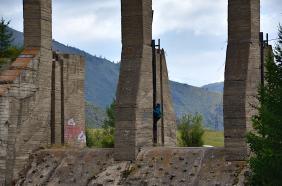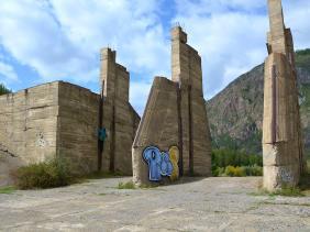 Выглядит все это впечатляюще. Практически готовая ГЭС была заброшена. Бетонные опоры, разрисованные граффити, торчащая арматура. Забетонированная площадка перед опорами так и просится для проведения музыкального фестиваля! Место атмосферное, интересная локация для фотосессии!
