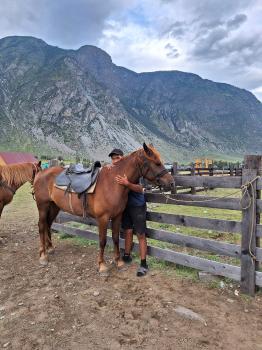 Только у нас вы можете взять в аренду коней. Кони спокойные, обученные.