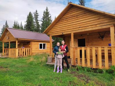 В домиках: две односпальные и одна двуспальная кровати, печка, туалет на территории.