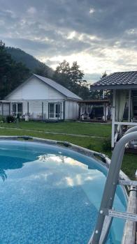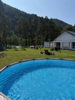 На территории бассейн, летняя кухня беседка. Выход к реке Катунь.