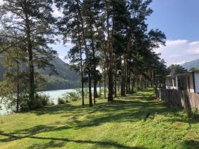 Номера оснащены всем необходимым и даже включают в себя вентиляторы в каждом номере, которые спасают в особо жаркую погоду. Природным вентилятором можно назвать Катунь, ведь благодаря своему течению она разгоняет воздух в местах, рядом расположенных с нею. Но с проблемой жары вы будете сталкиваться крайне редко вдоль берега возвышаются прекрасные сосны, спасающие от палящих лучей солнца.