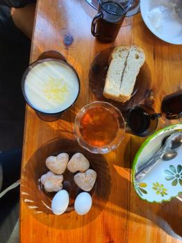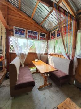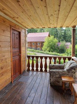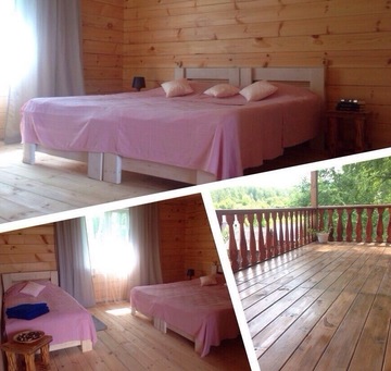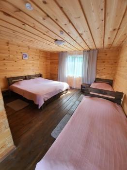 Благоустроенная гостиница. Построена в 2017 году. Просторные и уютные номера (27 м2). Туалет и душевая кабина в каждом номере. Натуральные материалы (здание и мебель выполнены из дерева). Уютная терраса. Наличие холодильников, отдельной беседки с мангальной зоной и парковки. Приемлемые цены. Питание входит в стоимость.