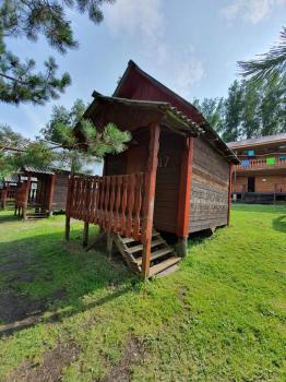 Кедровые домики и Общий корпус. Отдельностоящие домики (3-4 места) из кедра. Деревянная мебель, крытое крыльцо позволяют комфортно отдыхать. Душ, туалет в номерах и домиках.. Рядом большие беседки с мангалами, водопроводом и электророзетками для общего пользования.