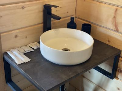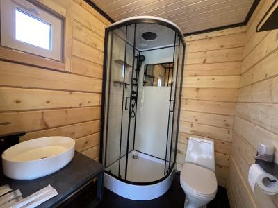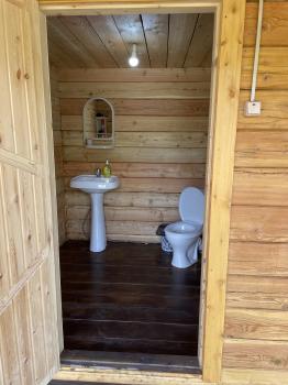 На территории душ (горячая, холодная вода), туалет (унитаз, раковина).