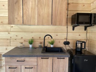 Для приготовления пищи на территории есть кухня-веранда, которая оборудована всем необходимым (холодильник, плита, духовка, микроволновка, вся необходимая посуда и раковина с горячей водой)